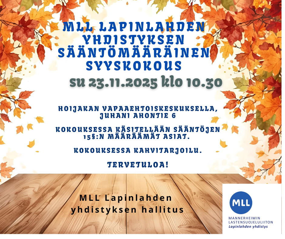 Syksyinen tervehdys Sinulle MLL:n Lapinlahden yhdistyksen jäsen